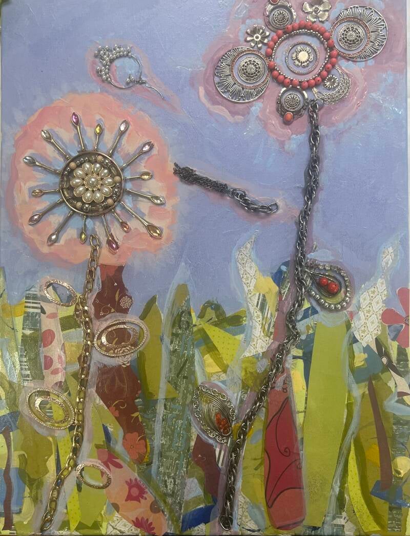 Flowers 1, Acrylic Assemblage on Gallery Style Canvas, 8"x8', 2023