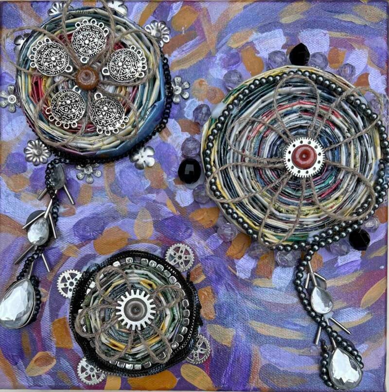 Acrylic Assemblage on Gallery Style Canvas, 12' x12", 2023