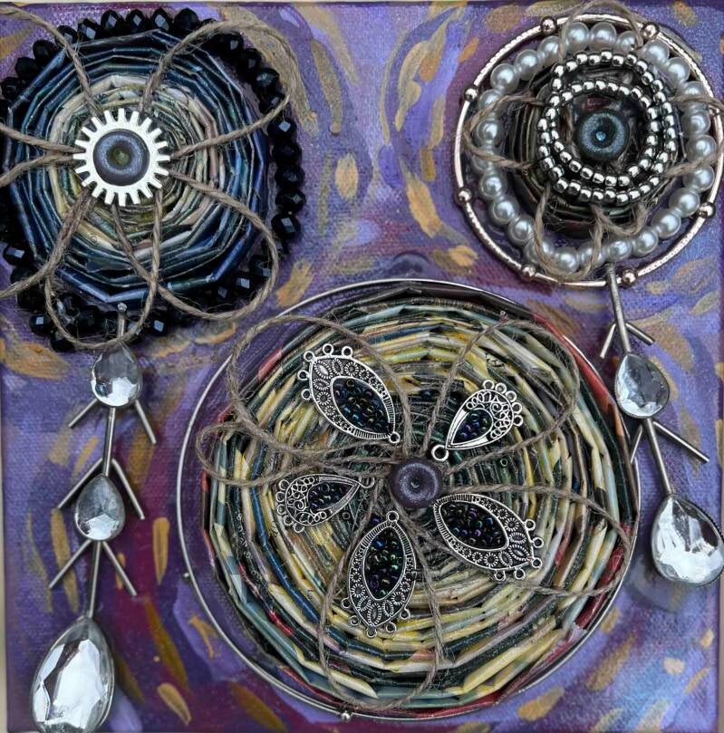 Ornament Series #1, Acrylic Mixed Media Assemblage on Gallery Style Canvas, 6"X6", 2022