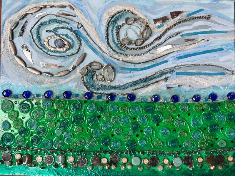 Breeze Over the Ocean, Acrylic Assemblage on Gallery Style Canvas, 18"x 24", 2022