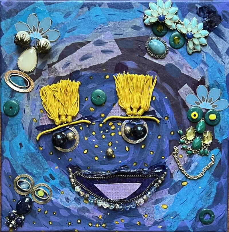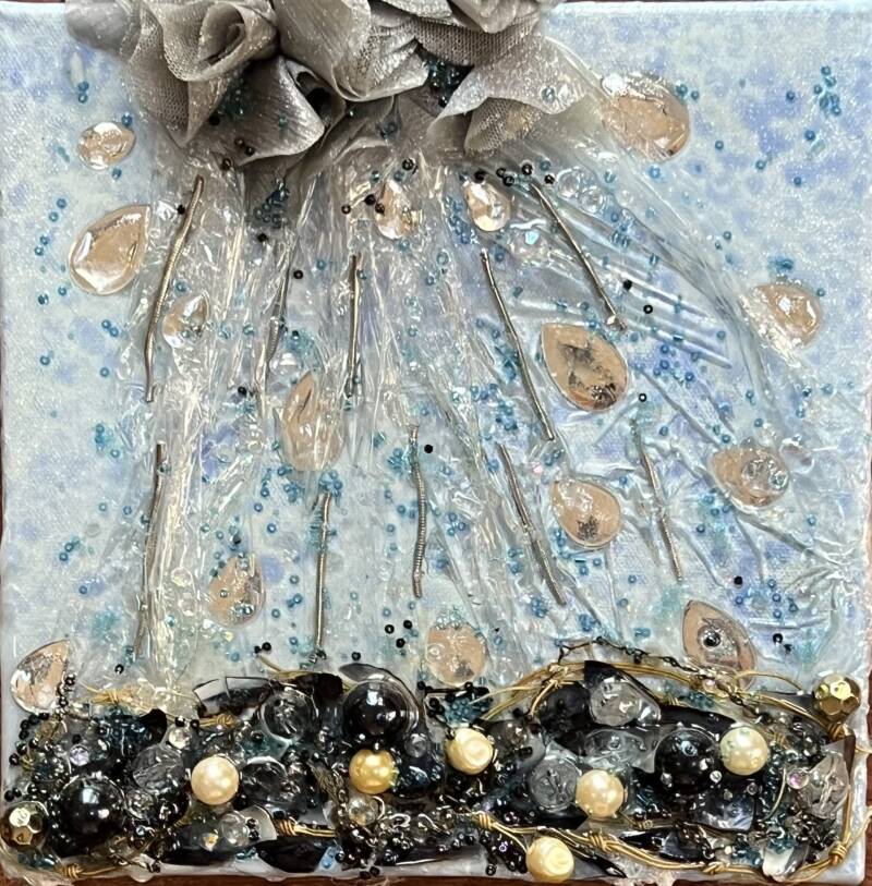 Tears, Acrylic Assemblage on Gallery Style Canvas, 10" x10", 2023